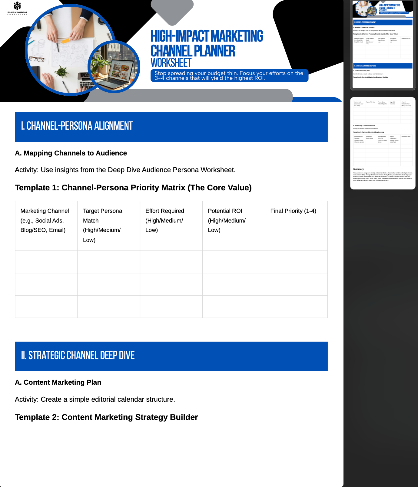 The average entrepreneur is paralyzed by marketing options: SEO, social media, email, partnerships...Where should you actually spend your time and money? This worksheet provides a structured filtering process, aligning your product, budget, and audience with the 3-4 channels that will deliver strong results.
